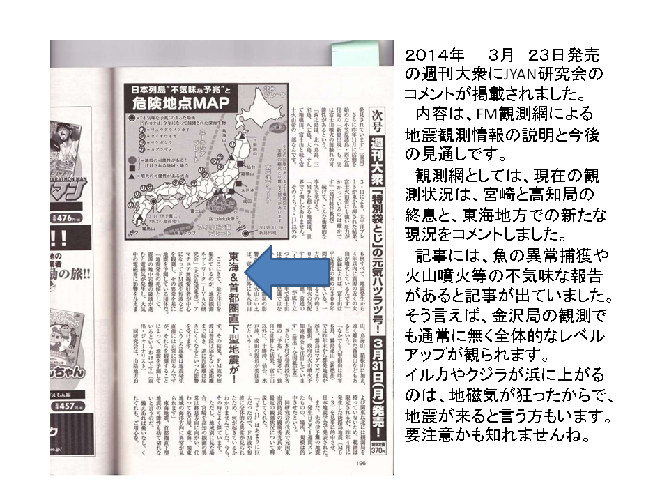 A.各観測局等で確定的な異常を観測した場合にのみ配信しますが、現在、配信できるのは、JYAN研究会の会員